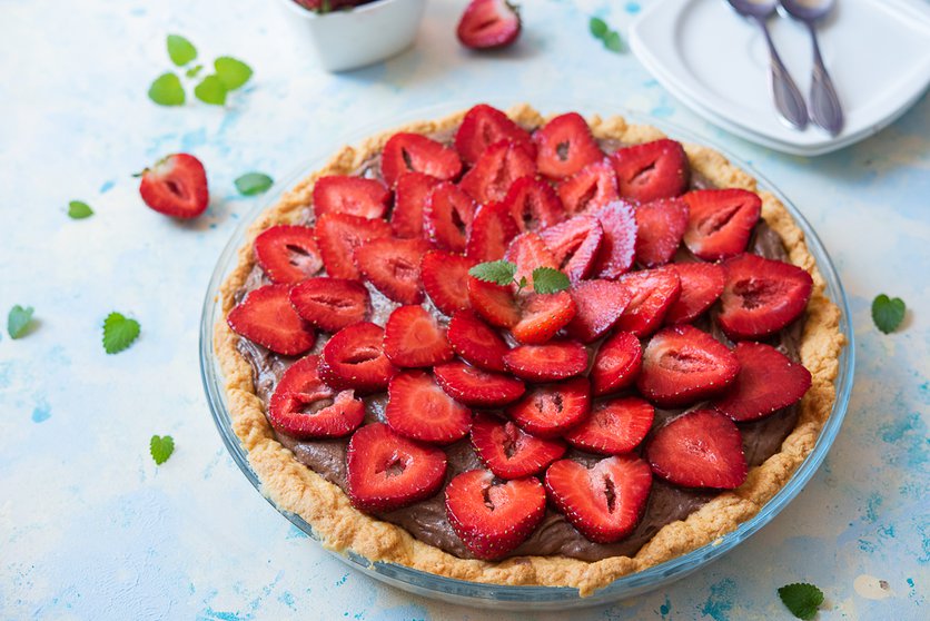 Keto ciasto z musem czekoladowym i truskawkami (Paleo, LowCarb, Vegan)