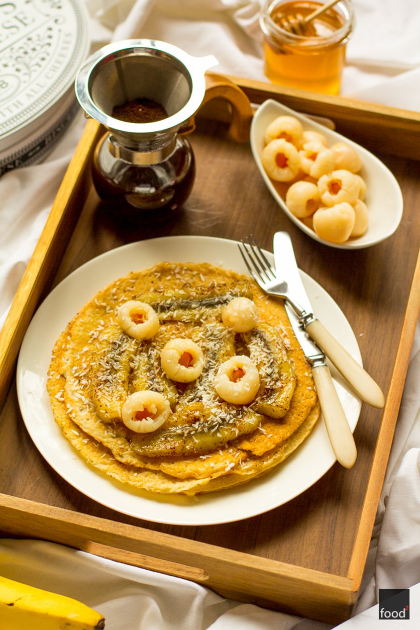 Naleśniki kokosowe ze smażonymi bananami i liczi