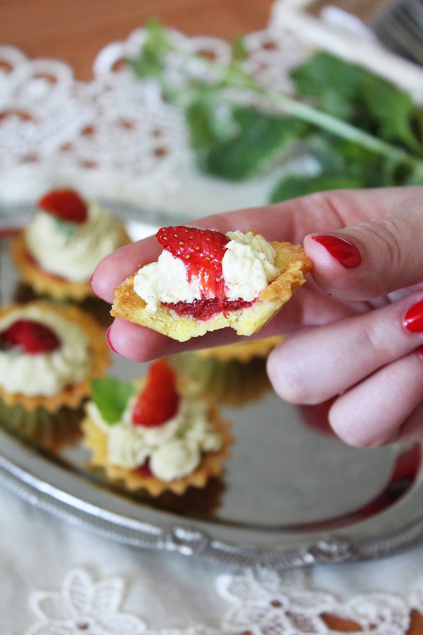 Truskawkowe kruche babeczki z kremem z białej czekolady
