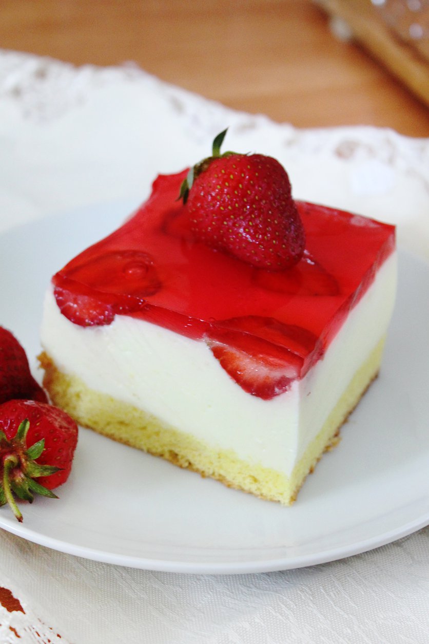 Lekki sernik na jogurtach greckich z białą czekoladą i truskawkami