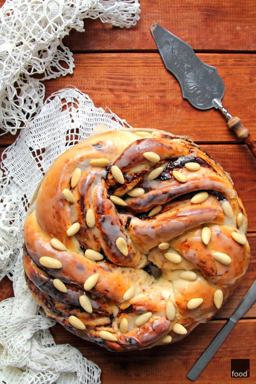 Wieniec drożdżowy z powidłami i migdałami