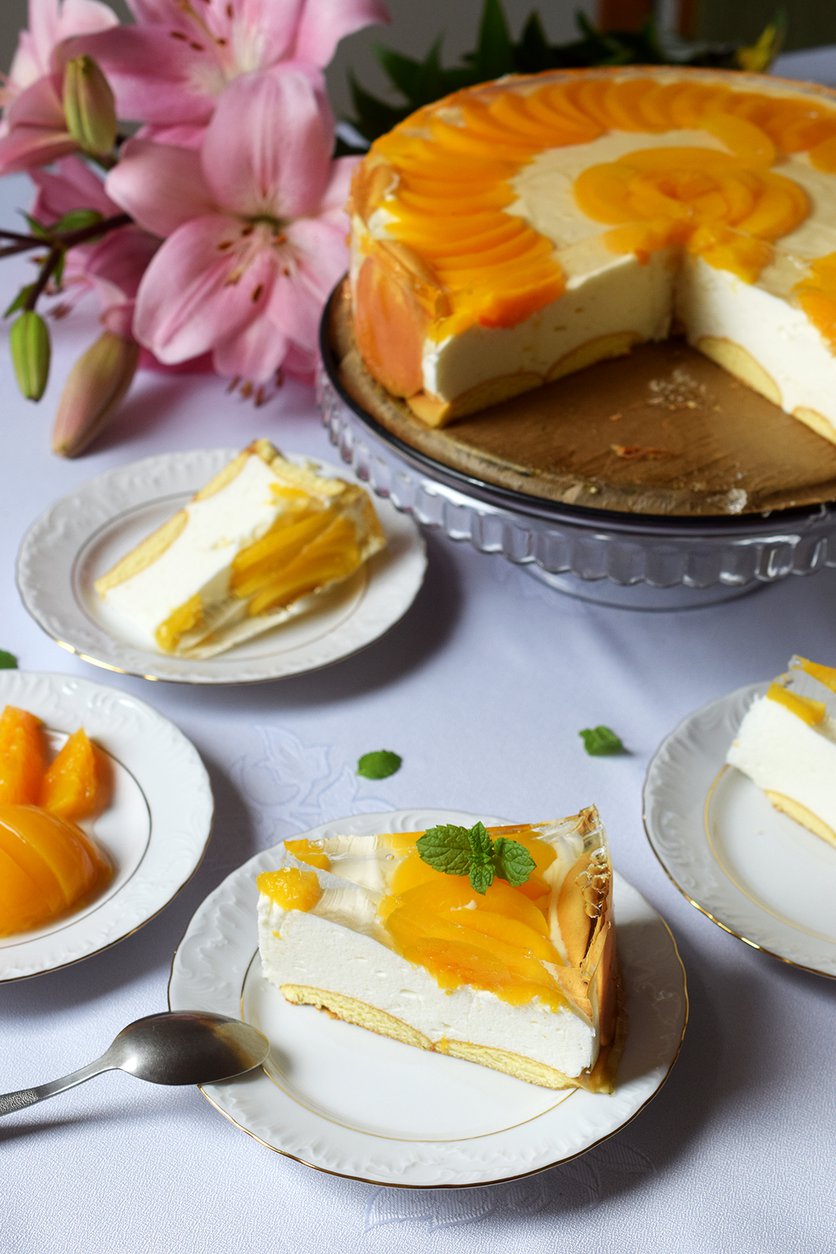Brzoskwiniowy sernik na zimno z galaretką krystaliczną (przezroczystą)