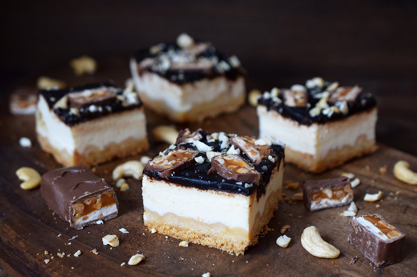 Sernik z polewą czekoladową i snickersami