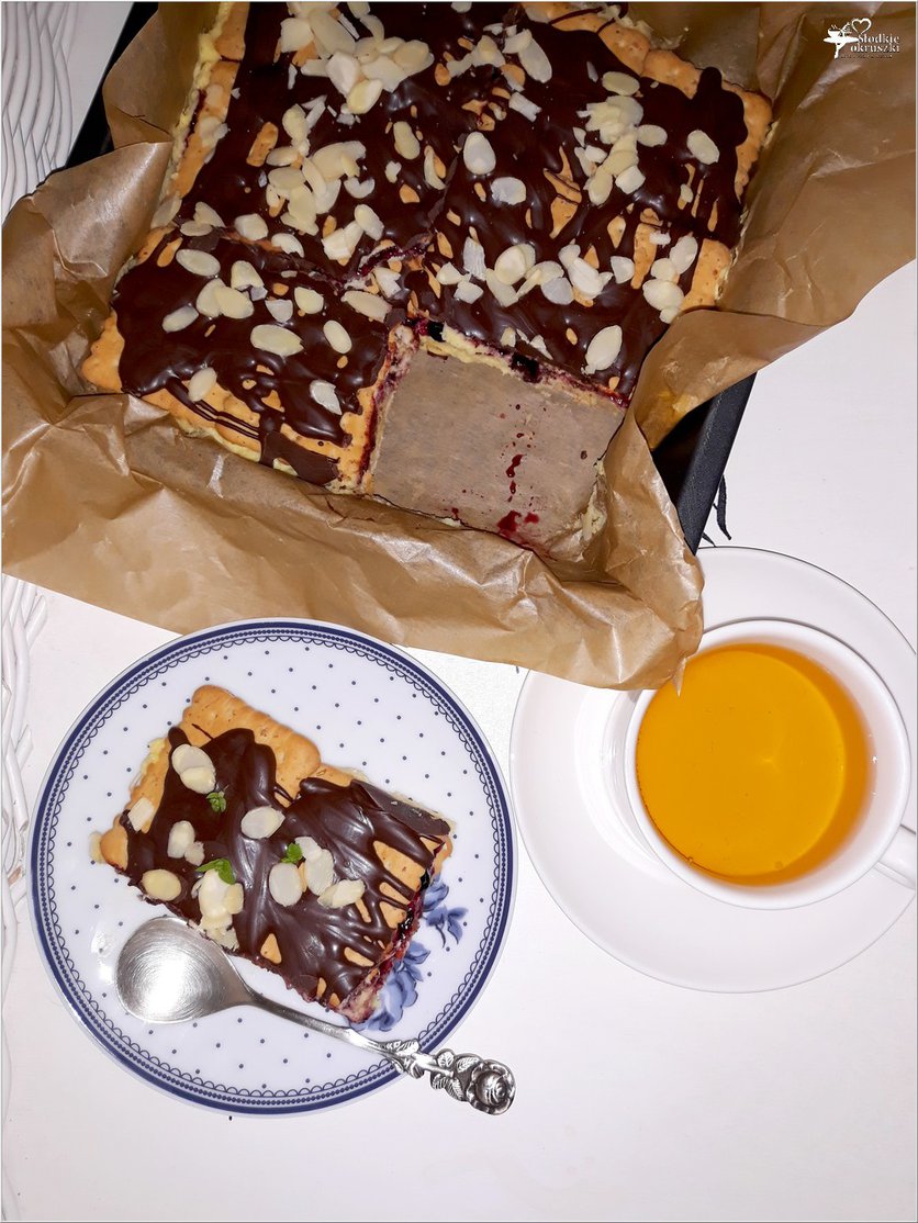 Szybkie ciasto karpatkowo-jagodowe. Prosty deser bez pieczenia.