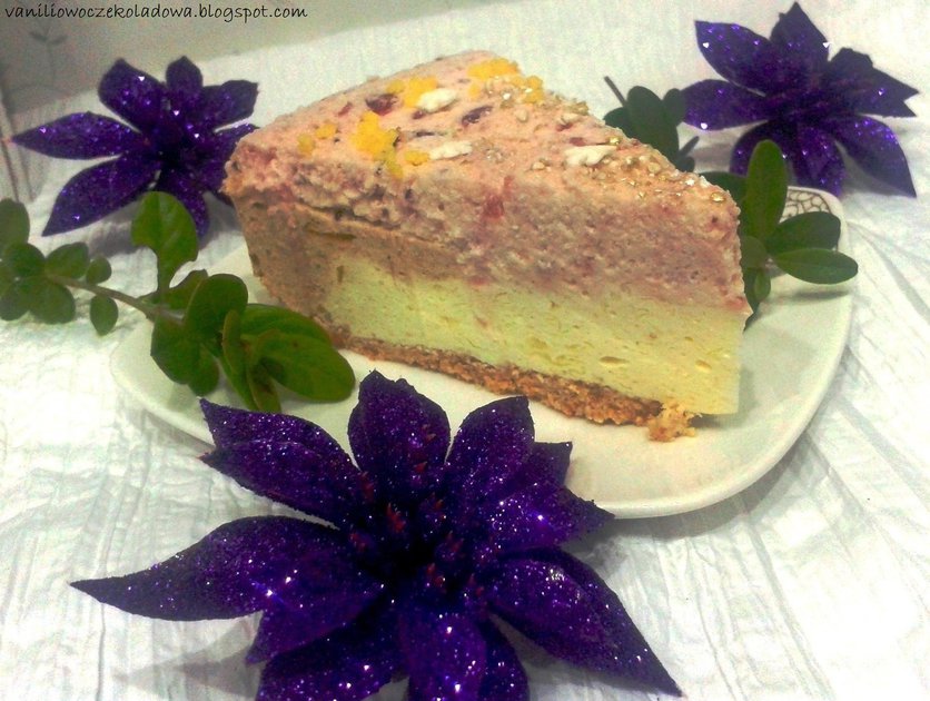 Sernik daktylowo - waniliowy z musem żurawinowym ( bez pieczenia)