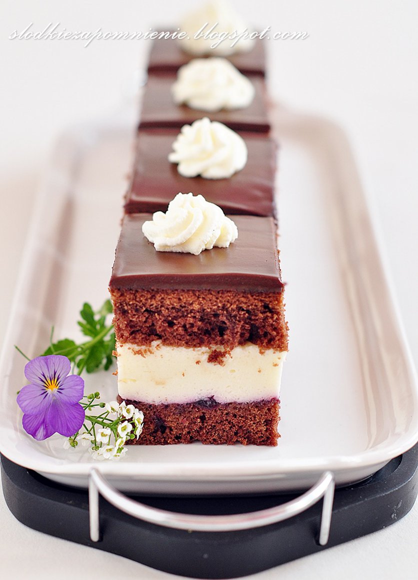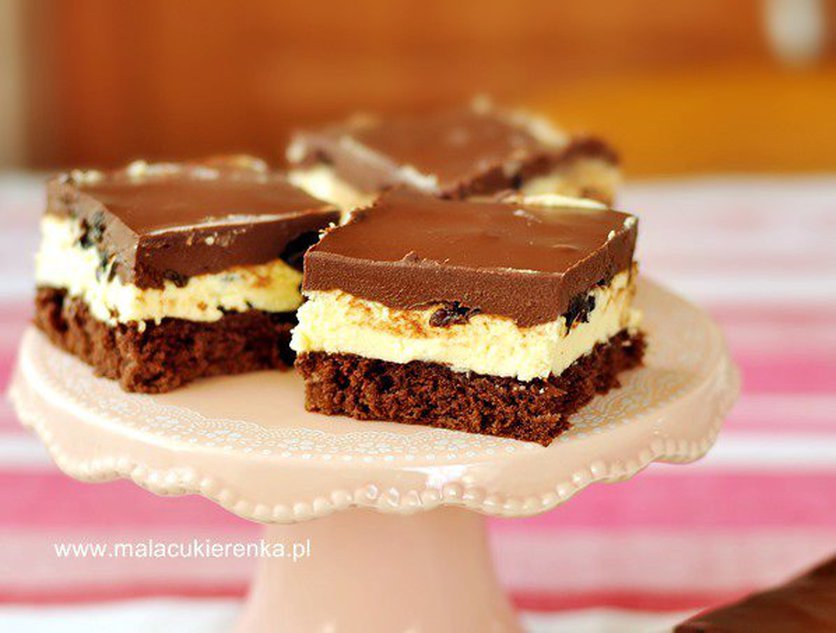 Ciasto z kremem i polewą czekoladowo – wiśniową