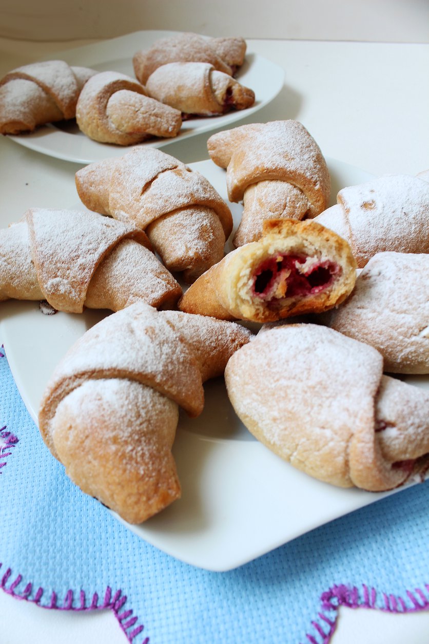 Krucho – drożdżowe rogaliki z malinami