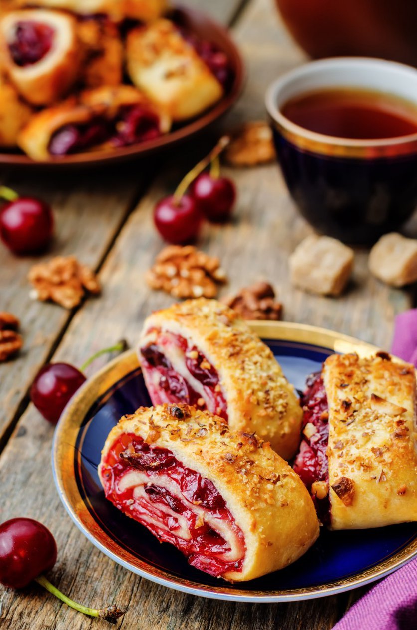 DROŻDŻOWE BUŁECZKI Z WIŚNIAMI