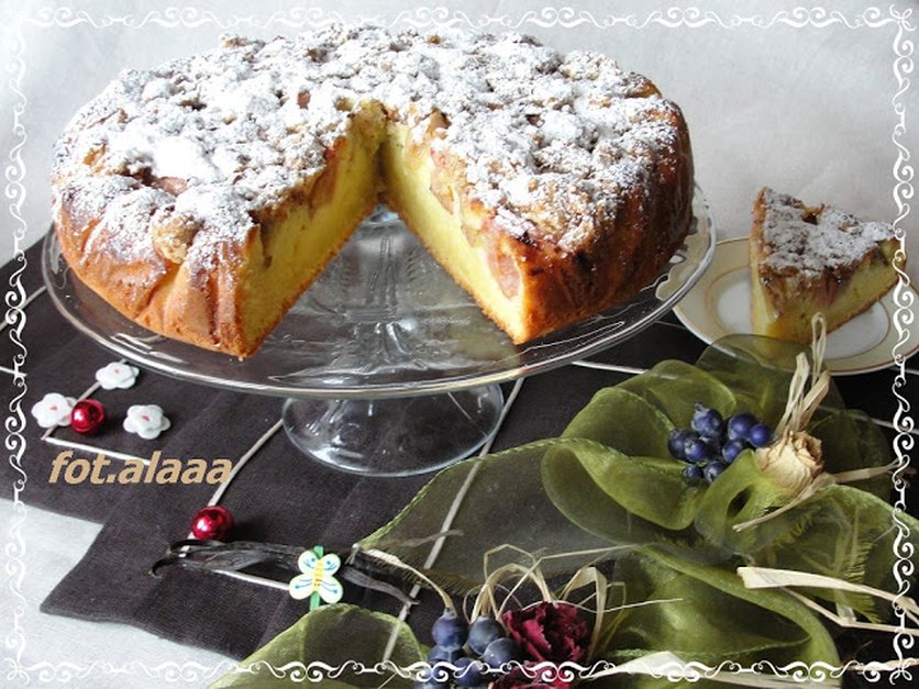 Jogurtowiec z rabarbarem i kruszonką migdałową