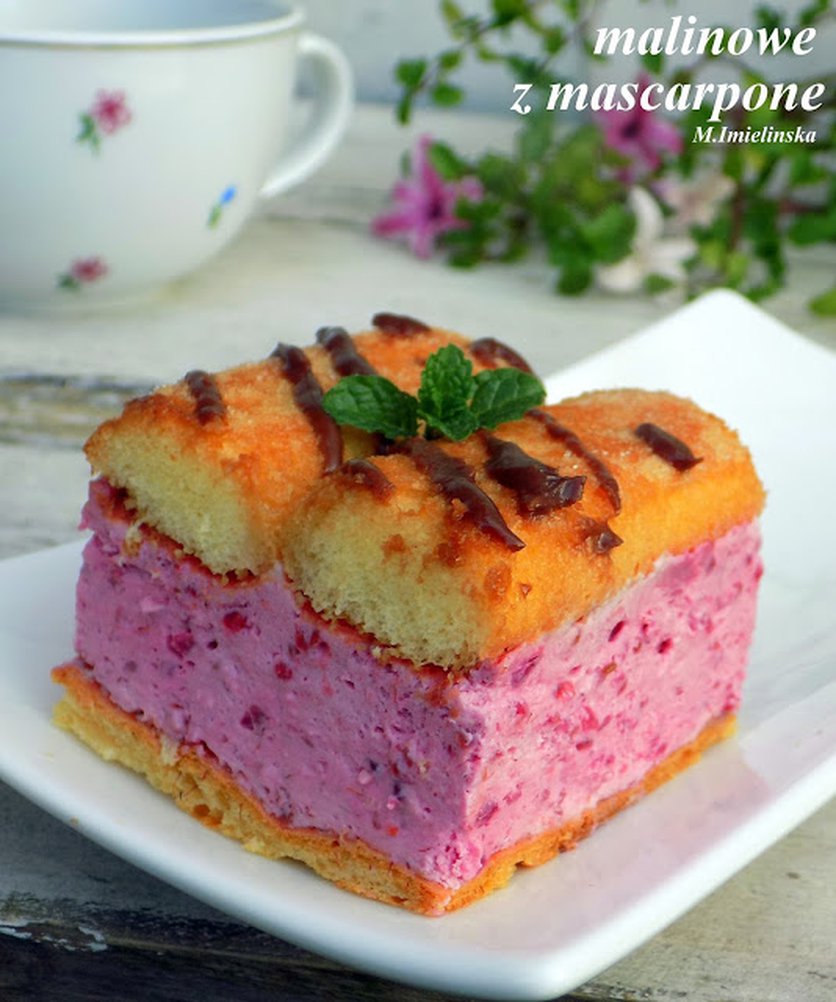 Puchate ciasto malinowe