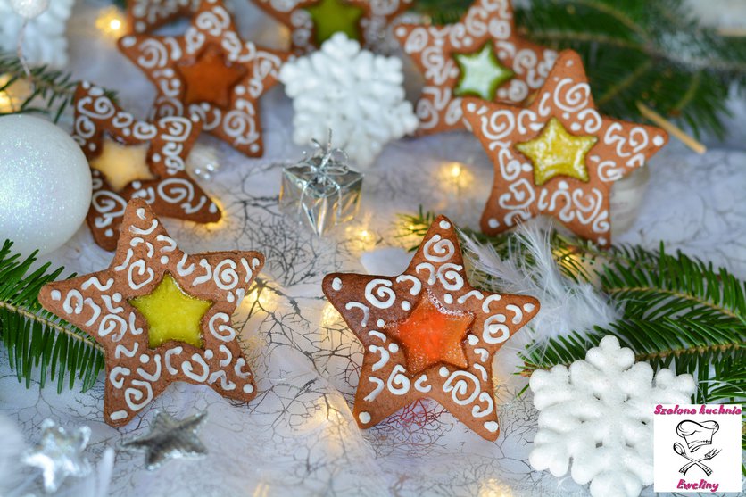 Gwiazdkowe pierniki z kolorowymi witrażykami