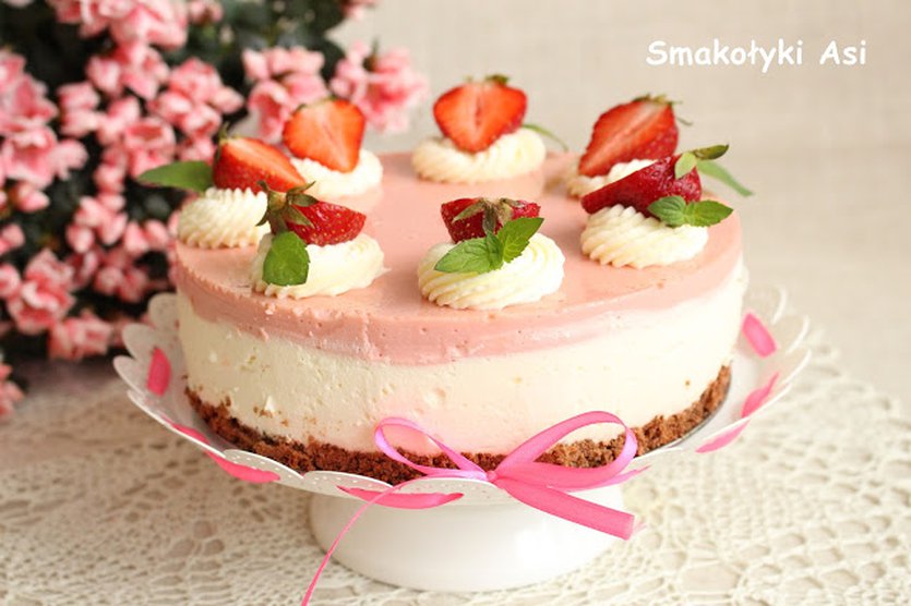 Tarta z kremem waniliowym, owocami lata i galaretką z białego wina