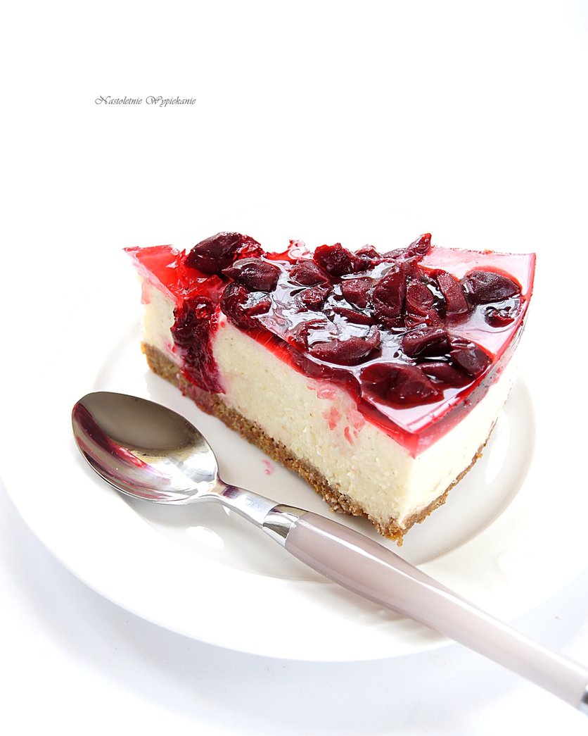 Sernik jaglany na zimno z wiśniami