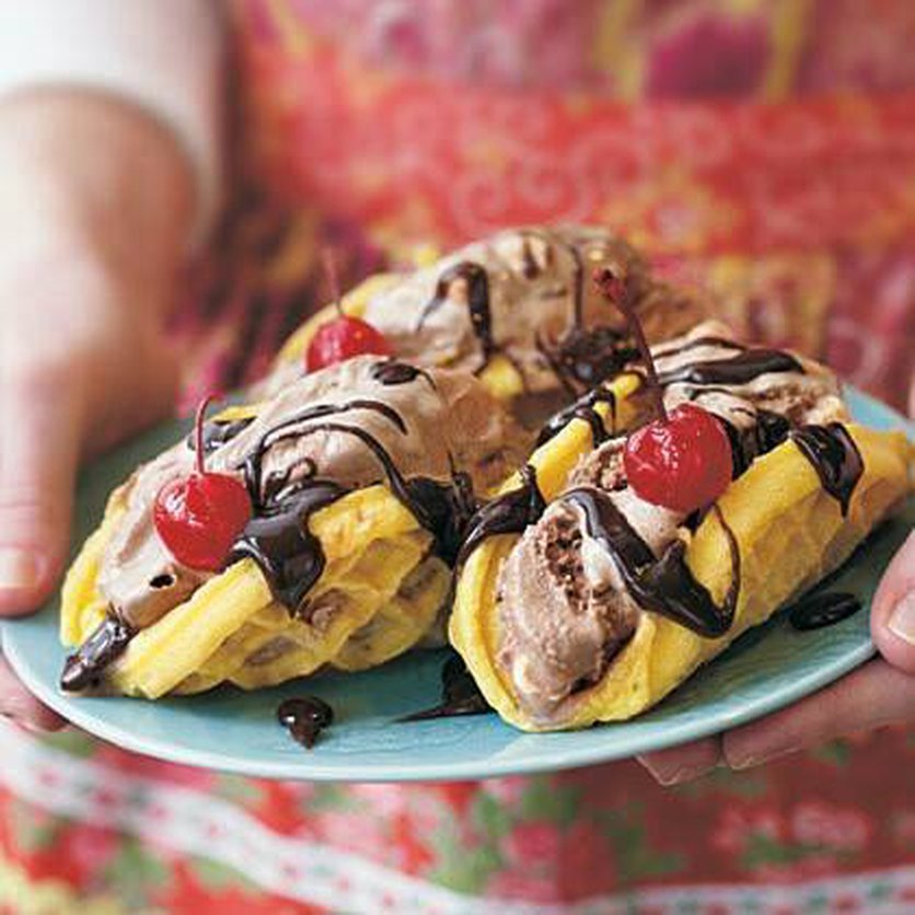 Gofry z czekoladowymi lodami