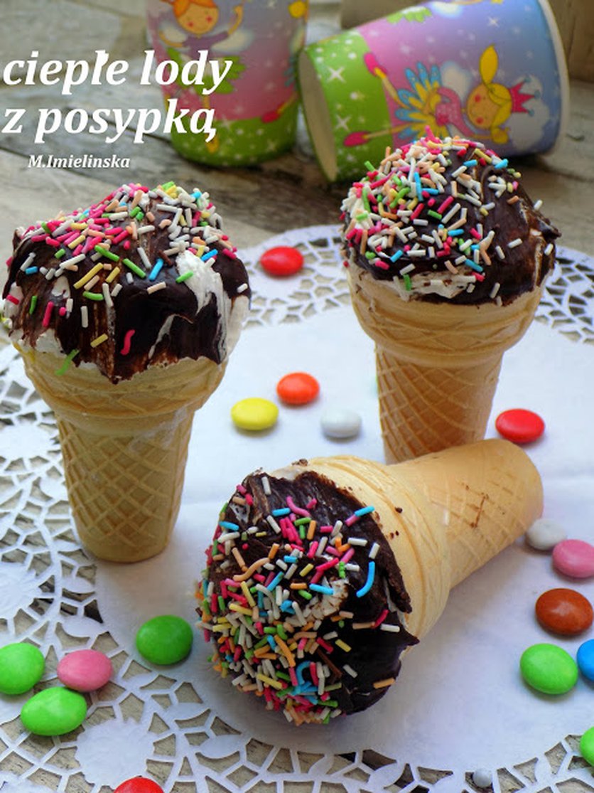 ciepłe lody z kolorowa posypką