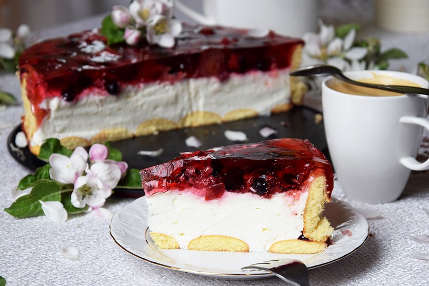 Lekki sernik w stylu włoskim z serkiem mascarpone i świeżymi owocami
