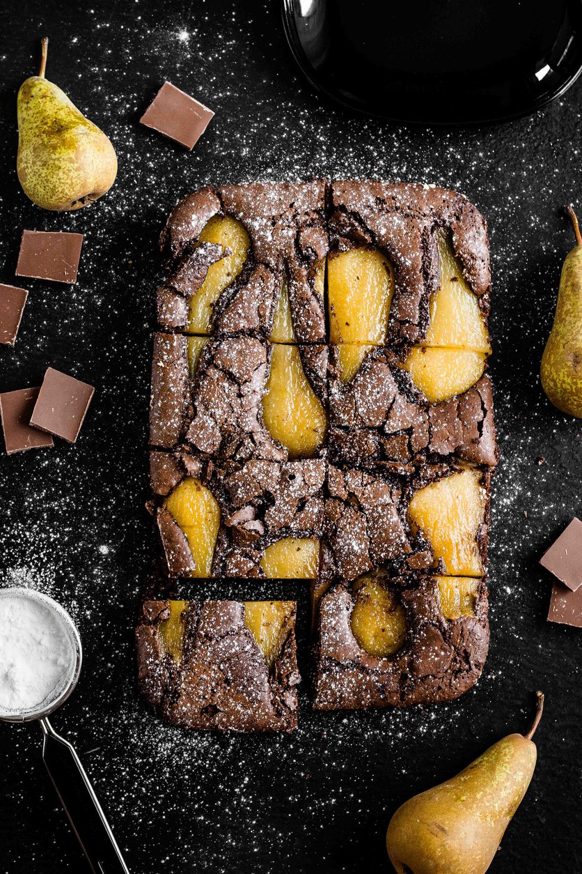Brownie z gruszką gotowaną w syropie