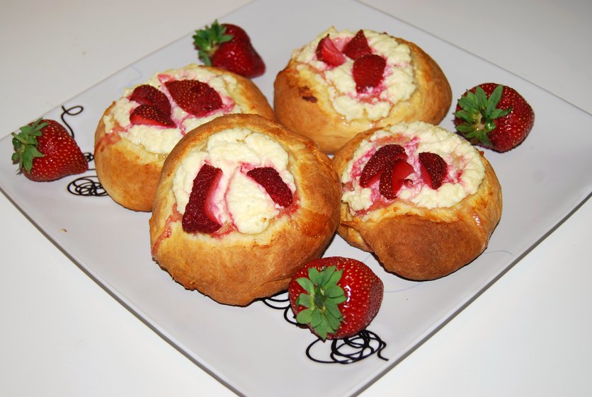 Drożdżówki z serem i truskawkami
