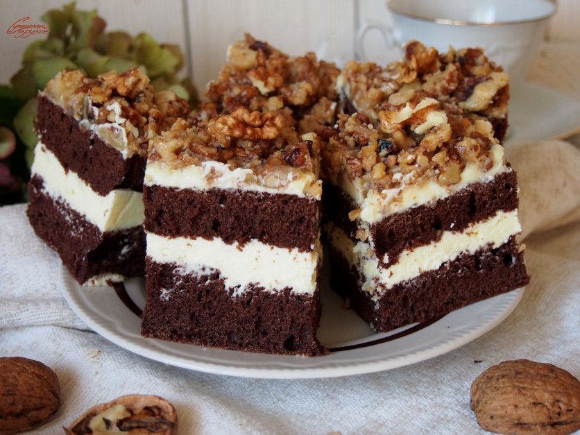 ciasto z kremem i orzechami
