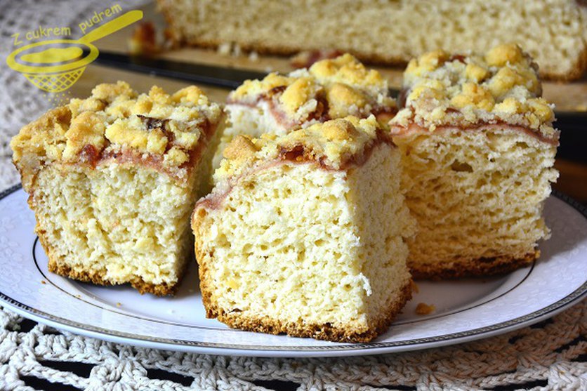 Puszysta drożdżówka z dżemem i kruszonką