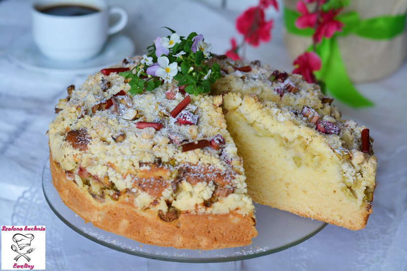 Puszyste ciasto z rabarbarem i kruszonką