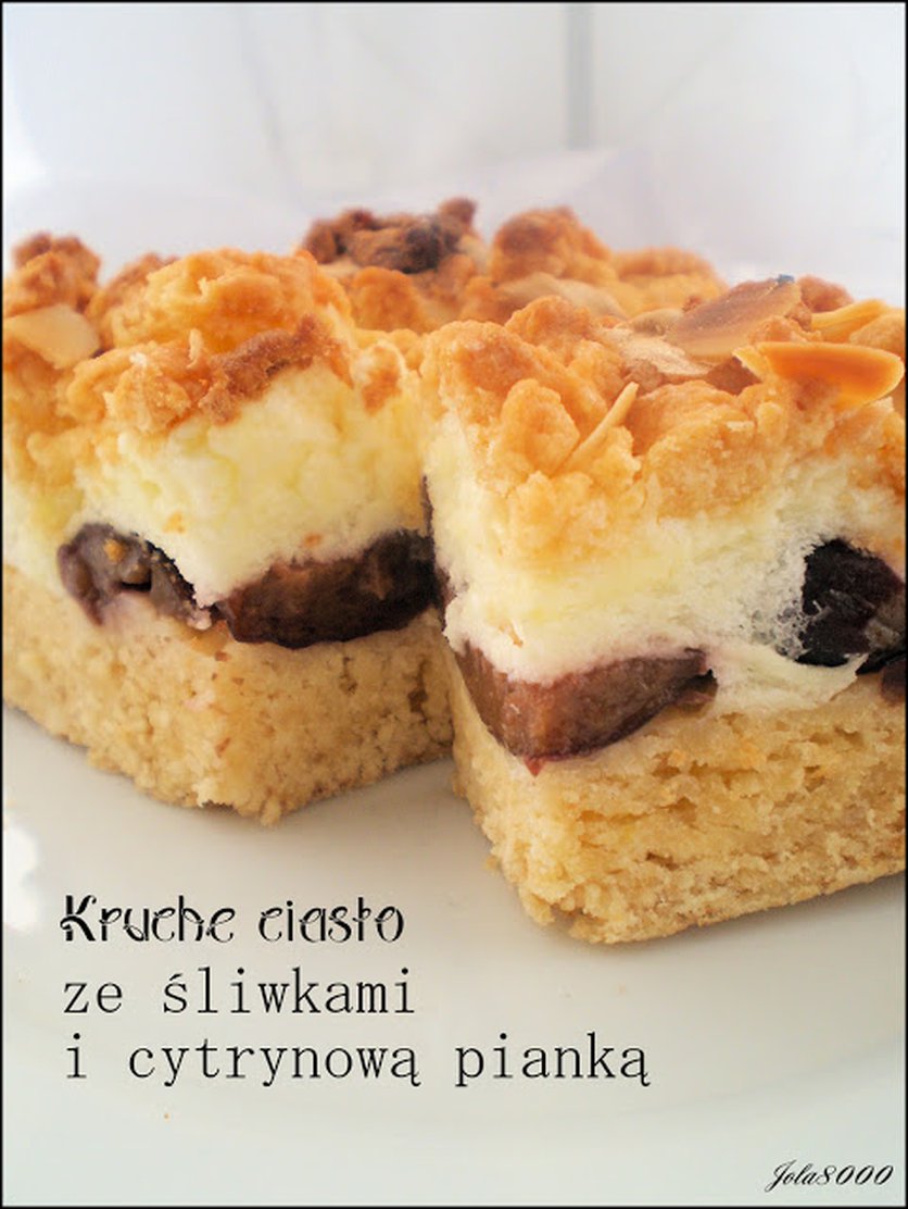 Kruche ciasto ze śliwkami i cytrynową pianką