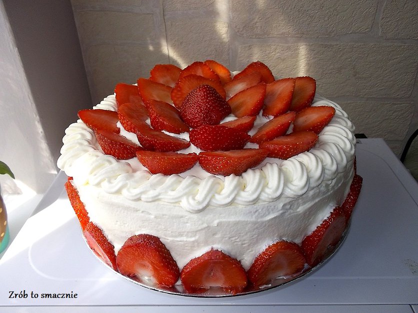 TORT ZE ŚMIETANĄ I TRUSKAWKAMI
