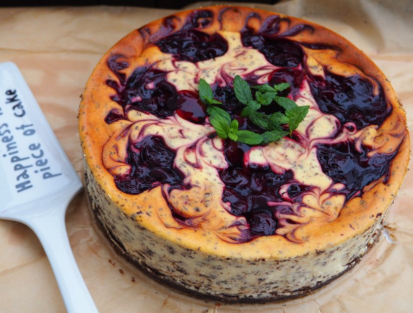 SERNIK STRACIATELLA Z WIŚNIAMI (na gryczanym spodzie)