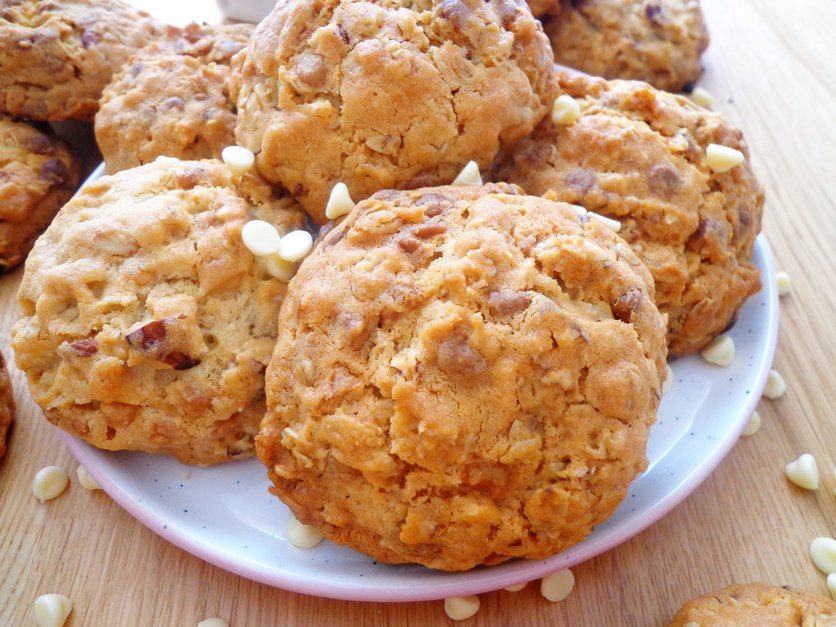 Ciasteczka z białą czekoladą, migdałami i płatkami owsianymi