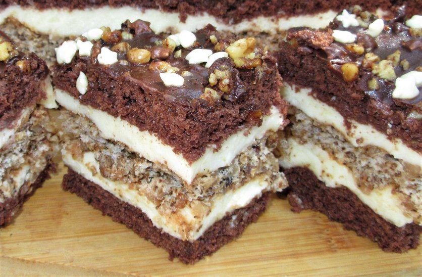 Ciasto COLA z kremem herbatnikowo-orzechowym i śmietanką