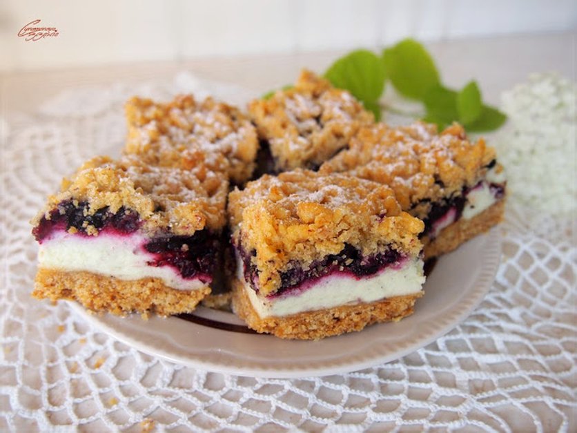 Ciasto na kwaśnej śmietanie z jagodami i kruszonką.