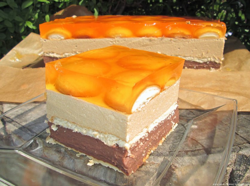 Ciasto Mały Książę-bez pieczenia, czekoladowo-kawowe z galaretką i mlekiem w proszku