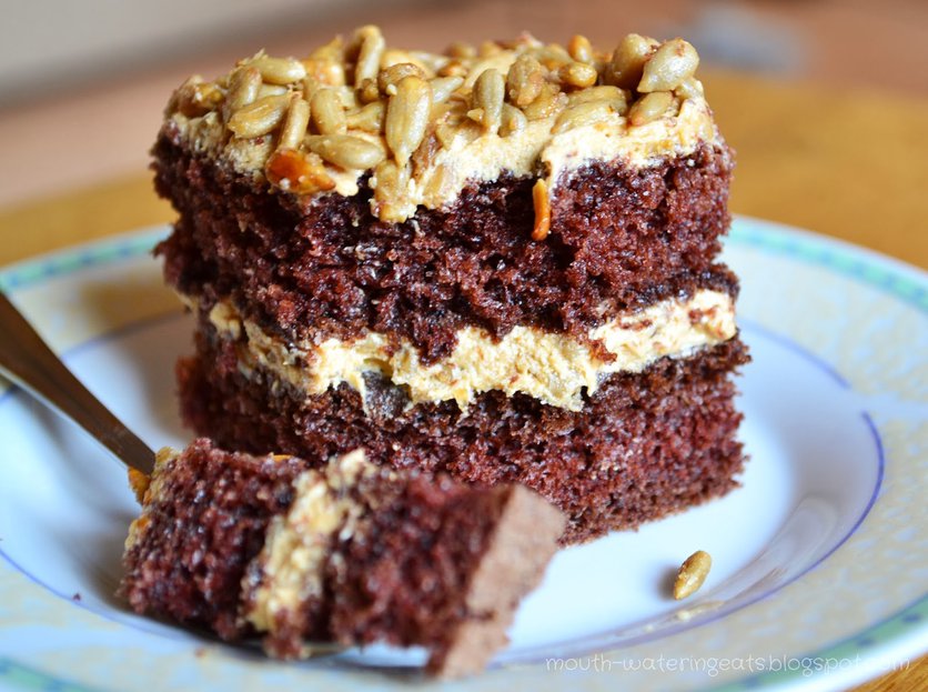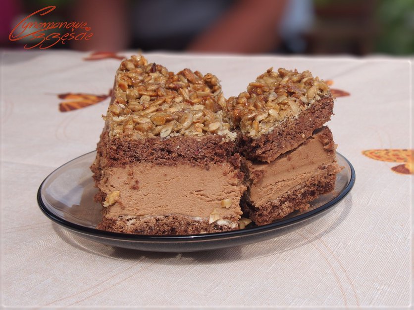 Sernik na zimno z prażonym słonecznikiem i bananami (czekoladowo-kakaowy)-rewelacja