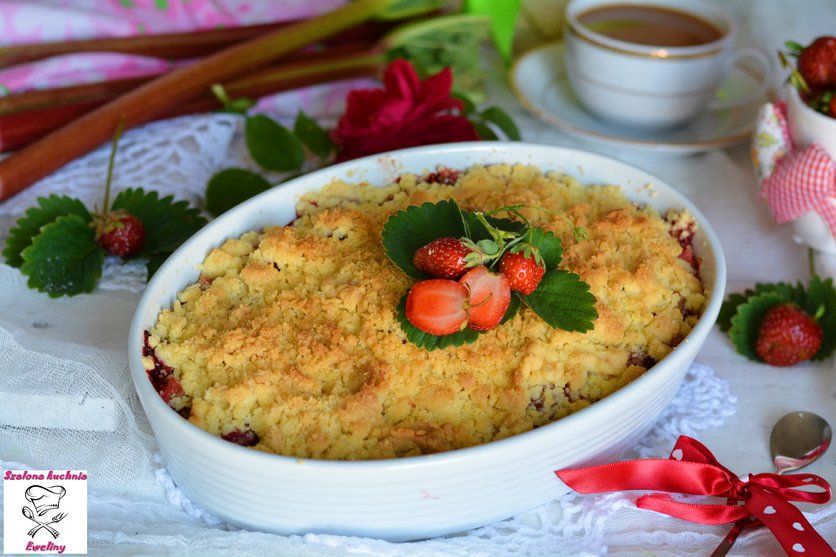 Rabarbar z truskawkami pod kruszonką