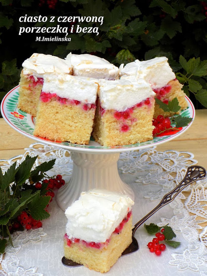 ciasto z czerwoną porzeczką i bezą