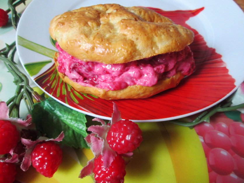 Eklerki- bułeczki ptysiowe z kremem malinowym