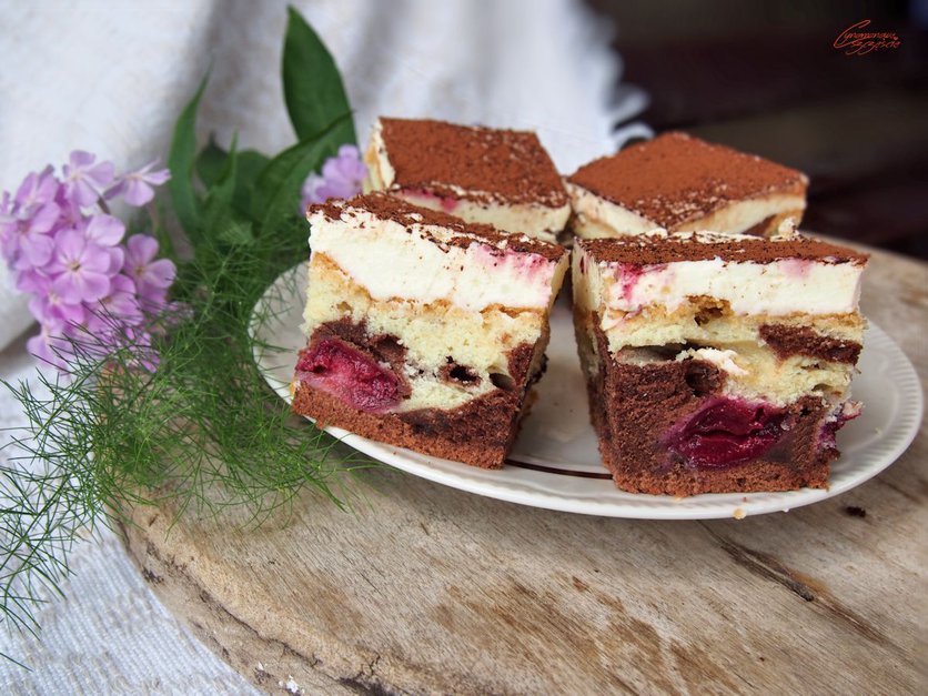 ciasto z wiśniami i kremem