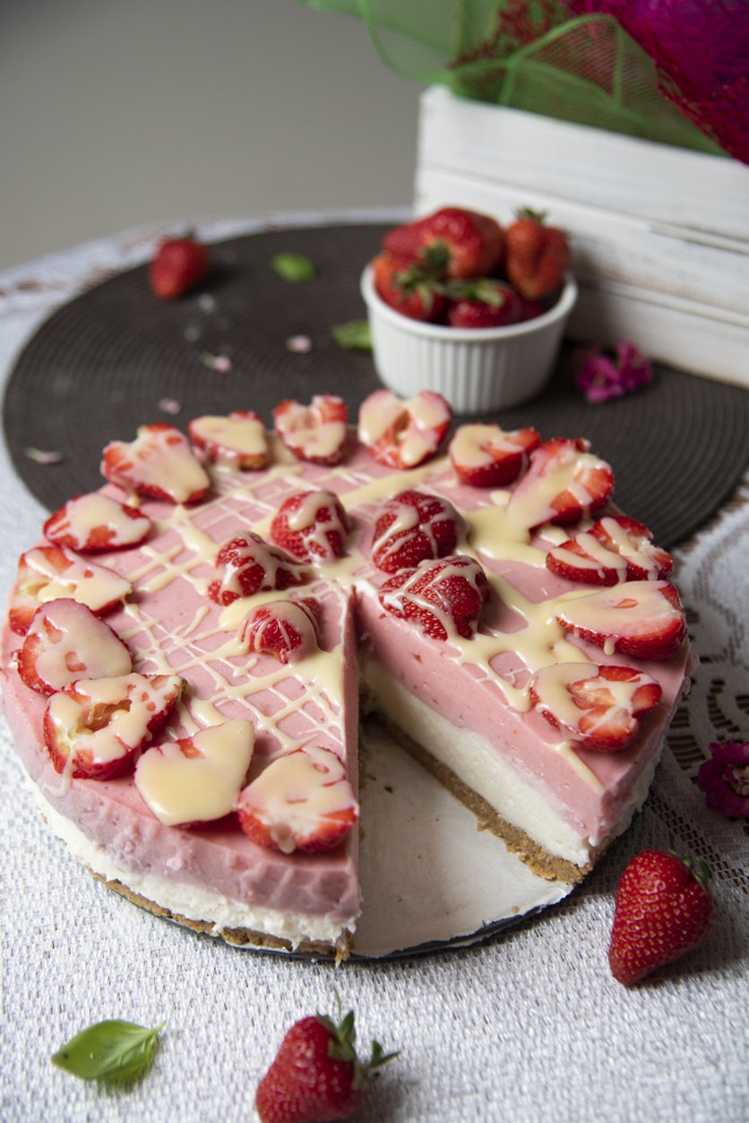 Puszysty FIT sernik na zimno z jogurtów greckich na kruchym spodzie