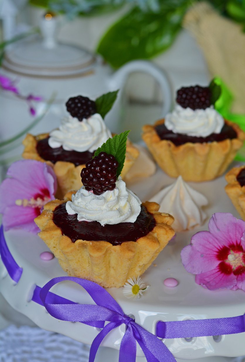 Ciasto kruche z jeżynami oraz budyniową pianką