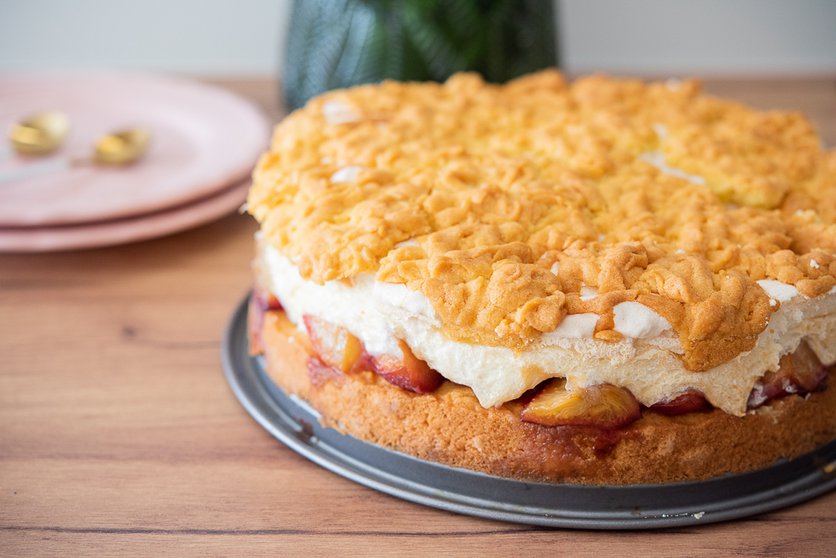 Kruche ciasto ze śliwkami i pianką