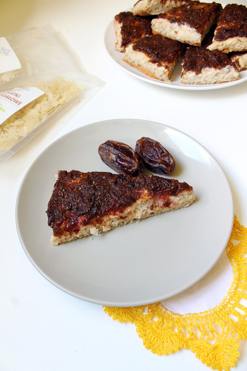 Ciasto z kremem kokosowym, nasionami chia i śliwkami