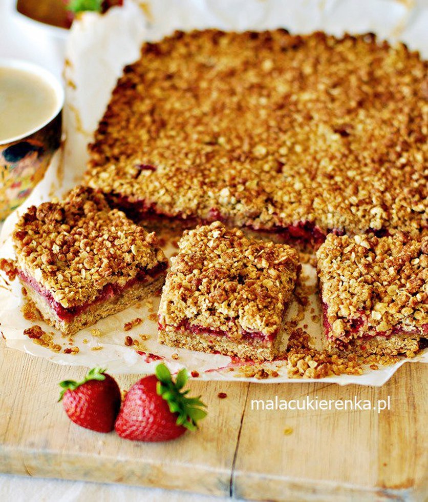 Ciasto z kruszonki z truskawkami i mąką orkiszową bez jajek