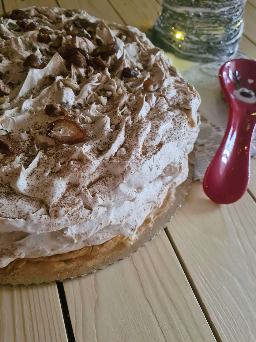 Dacquoise z kremem kajmakowo-cynamonowym i daktylami
