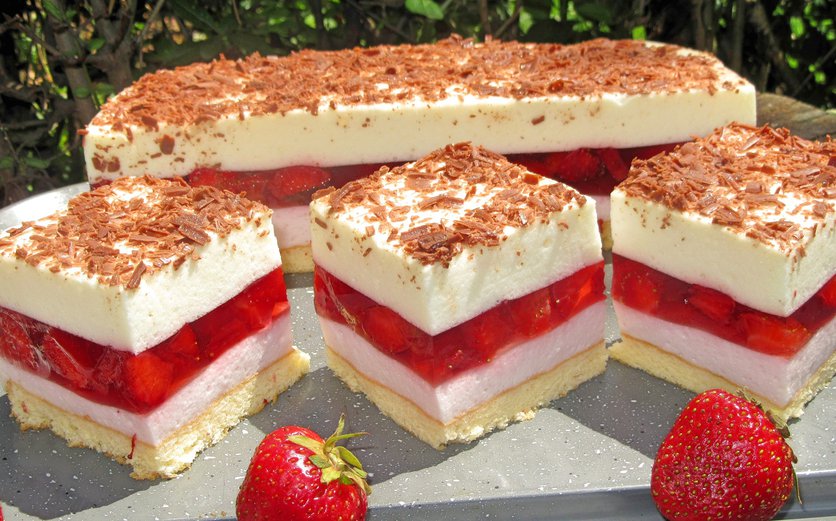 Ciasto Ptasie Mleczko z truskawkami-łatwe, delikatne i przepyszne-tylko kilka składników
