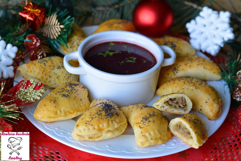 Wigilijne pieczone pierożki z kapustą i pieczarkami
