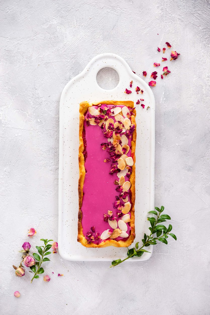 Jaglany deser różany z rabarbarem - wegański, bez glutenu, bez cukru