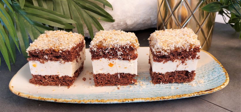 Ciasto brzoskwiniowe ze smażonymi wiórkami kokosowymi