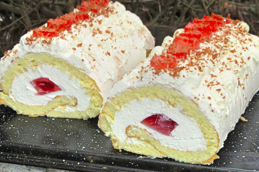 Rolada biszkoptowa z kremem śmietankowym mascarpone i galaretką-pyszna i delikatna