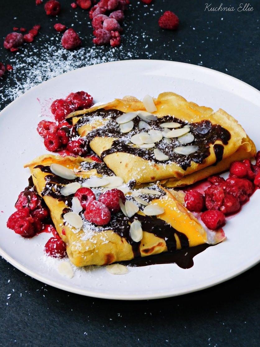 Budyniowe naleśniki z twarożkiem i malinami