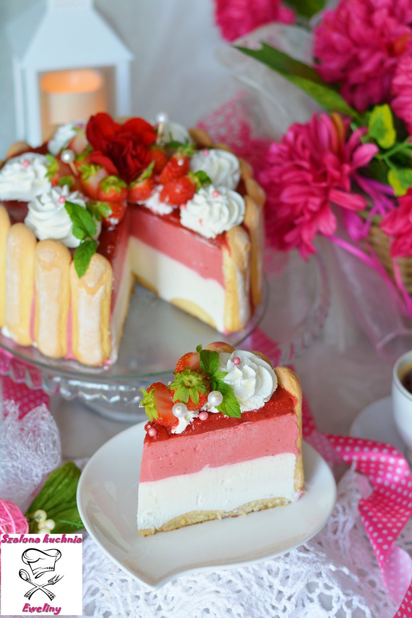Serowy torcik charlotte z truskawkami